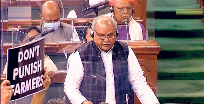 ਲੋਕ ਸਭਾ ਸੈਸ਼ਨ ਸ਼ੁਰੂ ਹੁੰਦੇ ਹੀ ਕੇਂਦਰੀ ਖੇਤੀ ਮੰਤਰੀ ਨਰਿੰਦਰ ਤੋਮਰ ਨੇ ਤਿੰਨ ਖੇਤੀ ਕਾਨੂੰਨਾਂ ਨੂੰ ਰੱਦ ਕਰਨ ਵਾਲਾ ਬਿੱਲ ਪੇਸ਼ ਕੀਤਾ ਤੇ ਉਸ ਨੂੰ ਬਿਨਾਂ ਬਹਿਸ ਦੇ ਪਾਸ ਕਰ ਦਿੱਤਾ ਗਿਆ ਜਿਸ ਕਾਰਨ ਕਾਂਗਰਸ ਸਣੇ ਹੋਰ ਵਿਰੋਧੀ ਧਿਰਾਂ ਨੇ ਨਾਅਰੇਬਾਜ਼ੀ ਸ਼ੁਰੂ ਕਰ ਦਿੱਤੀ। ਸਪੀਕਰ ਓਮ ਬਿਰਲਾ ਨੇ ਕਿਹਾ ਕਿ ਉਹ ਬਿੱਲ ‘ਤੇ ਚਰਚਾ ਕਰਵਾਉਣ ਲਈ ਤਿਆਰ ਹਨ ਪਰ ਵਿਰੋਧੀ ਧਿਰਾਂ ਨੇ ਹੰਗਾਮਾ ਕੀਤਾ। ਇਸ ਕਾਰਨ ਲੋਕ ਸਭਾ ਦੀ ਕਾਰਵਾਈ ਦੁਪਹਿਰ ਦੋ ਵਜੇ ਤੱਕ ਮੁਅੱਤਲ ਕਰ ਦਿੱਤੀ ਗਈ। ਇਸ ਤੋਂ ਪਹਿਲਾਂ ਇਸ ਬਿੱਲ ਦਾ ਖਰੜਾ ਲੋਕ ਸਭਾ ਮੈਂਬਰਾਂ ਨੂੰ ਭੇਜਿਆ ਗਿਆ ਸੀ ਪਰ ਇਸ ਦੀ ਸ਼ਬਦਾਵਲੀ ਨੂੰ ਲੈ ਕੇ ਵਿਰੋਧੀ ਧਿਰਾਂ ਨੇ ਇਤਰਾਜ਼ ਜਤਾਇਆ। ਕਾਂਗਰਸ ਆਗੂ ਸੋਨੀਆ ਗਾਂਧੀ, ਰਾਹੁਲ ਗਾਂਧੀ ਤੇ ਹੋਰਾਂ ਨੇ ਸੰਸਦ ਭਵਨ ਵਿੱਚ ਧਰਨਾ ਦਿੱਤਾ। ਇਸ ਕਾਰਨ ਲੋਕ ਸਭਾ ਤੋਂ ਬਾਅਦ ਰਾਜ ਸਭਾ ਦੀ ਕਾਰਵਾਈ ਵੀ ਮੁਅੱਤਲ ਕੀਤੀ ਗਈ।